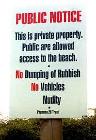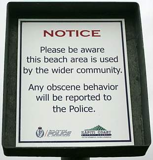 However, following complaints from some local residents of inappropriate behaviour, the council erected this sign at the entrance to the beach track; a move applauded by Free Beaches NZ..