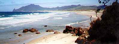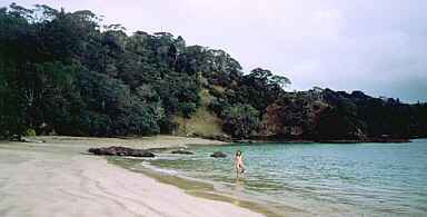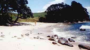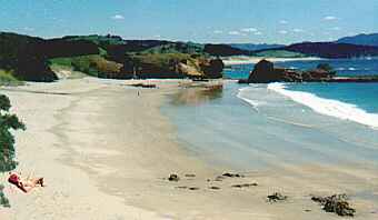 Only 3 km from Russell in the Bay of Islands, is Long Beach. Mostly, houses adorn the road behind the beach but at the far end, past the camping area, there's a pleasant place to be. Donkey Beach is the more popular, though.