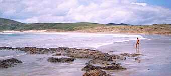 Starting just over the creek - just past the rocks - Ocean Beach offers the opportunity for a long walk. The other end, too, is accessible by car and also available for clothes-optional use, after a walk north of 500 m or so.